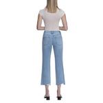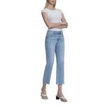 Mid-rise cropped straight jeans featuring light distressing, subtle fading, and a frayed hem