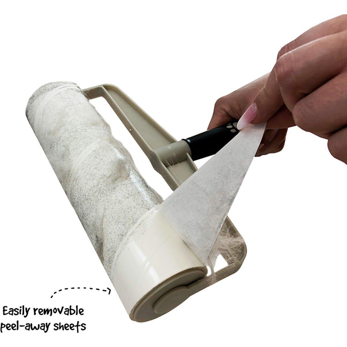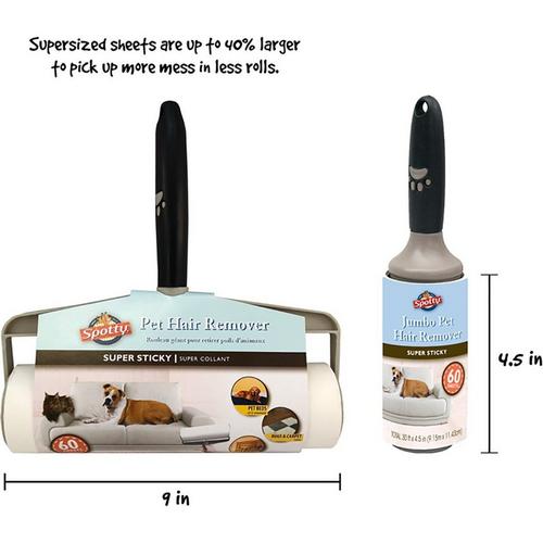 The soft-touch thermoplastic designed handle fits comfortably in your hand allowing for maximum control all while the innovative super-sticky tape removes messes quickly. These extra large sheets are made with a trusted adhesive and are 40% larger than the average lint roller so the toughest messes won’t stand a chance on any type of surface. When the sheet is full, simply peel it away and keep on rolling. 60 sheets, 30ft x 9in.