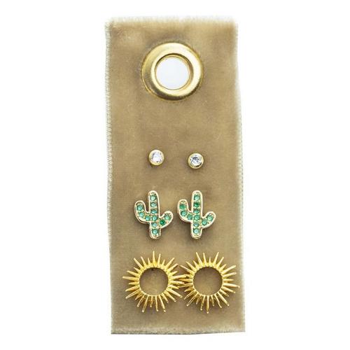 Splendid Iris Velvet Stud Cactus Gold Plated Earrings