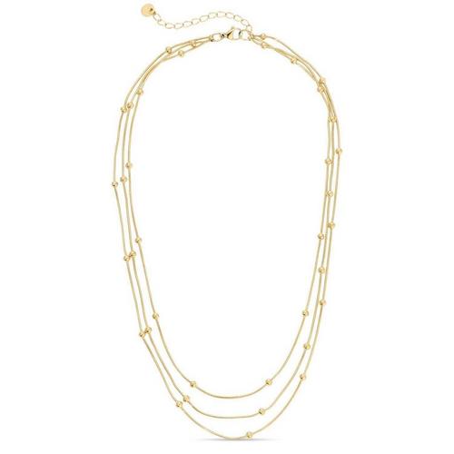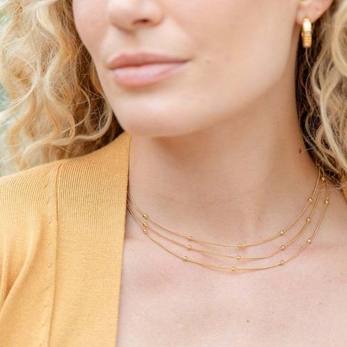 Create a delicate statement with effortless simplicity. This lovely triple layer necklace showcases delicate 3mm bead details, gracefully cascading along the length of the piece.