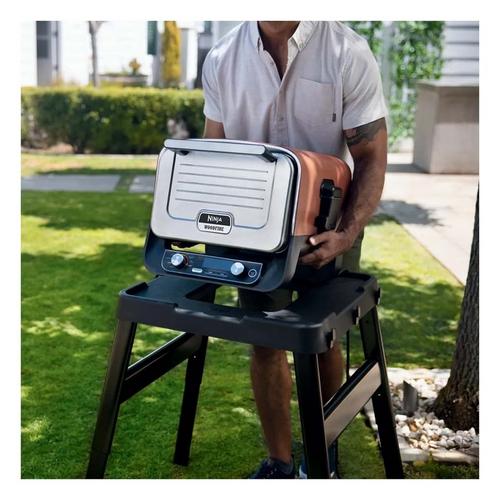Fits all Ninja Woodfire™ appliances, simple set up, 3 height levels side hooks for utensil access or side table extension and all-weather resistant.