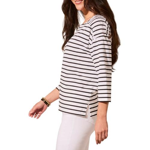Women's Tribal Stripe Jersey 3/4 Sleeve Boat Neck Shirt