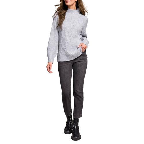 Women's Tribal Puff Sleeve Mock Neck Pullover Sweater