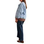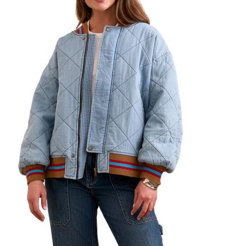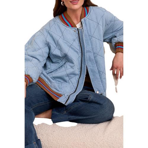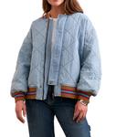 Women's Tribal Blue Thread Oversized Cotton Quilted Bomber Jacket