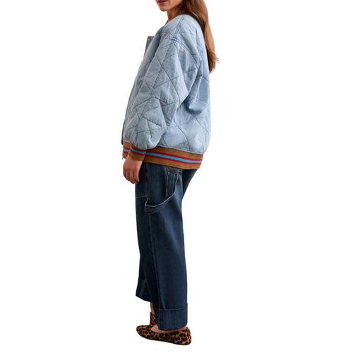 Old Price:Women's Tribal Blue Thread Oversized Cotton Quilted Bomber Jacket