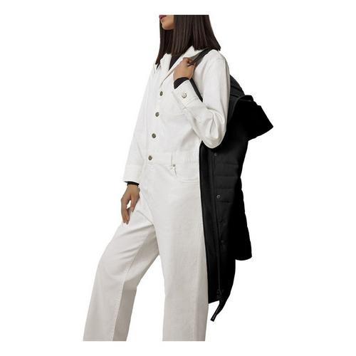 The Women's Canada Goose Lorette Parka offers a sleek look, maximum warmth, and no fur. Featuring down insulation and a mid-thigh length, the Canada Goose Lorette Parka effectively traps and retains body heat for incredible warmth even when temperatures dip below zero. The chevron quilting helps to keep the insulation in place as well as offer a flattering fit, while the down-filled hood with drawcords elevates the warmth and coverage of the Canada Goose Lorette Parka. Additional features to enhance function and performance include a two-way zipper, adjustable wrist cuffs with recessed rib-knit cuffs, and interior backpack straps to carry your coat hands-free while shopping.