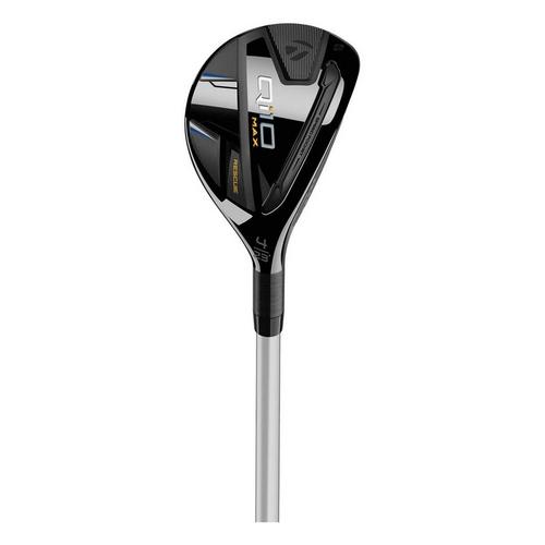 The Women's TaylorMade Qi10 Max Rescue Hybrid is made with the perfect blend of TaylorMade speed and Qi10 Max forgiveness. Engineered for easy hits, it features extreme perimeter weighting, an ultra-low center of gravity, and a larger carbon crown for versatile and forgiving play. The V Steel™ sole and Thru-Slot Speed Pocket optimize performance, while multiple loft options allow for personalized adaptability. Elevate your long iron game with the Women's TaylorMade Qi10 Max Rescue Hybrid—a user-friendly hybrid that delivers high launch, long carry distances, and confident play in any condition.