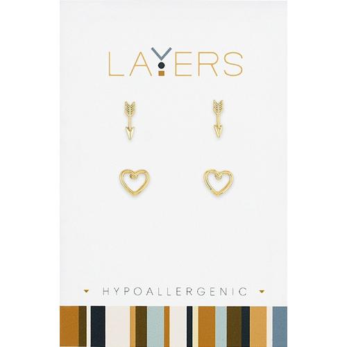 Layers Gold Arrow & Open Heart Duo Pair Stud Earrings