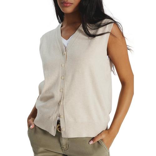 Women's 7 Diamonds Mira Button Front Sleeveless V-Neck Sweater Vest