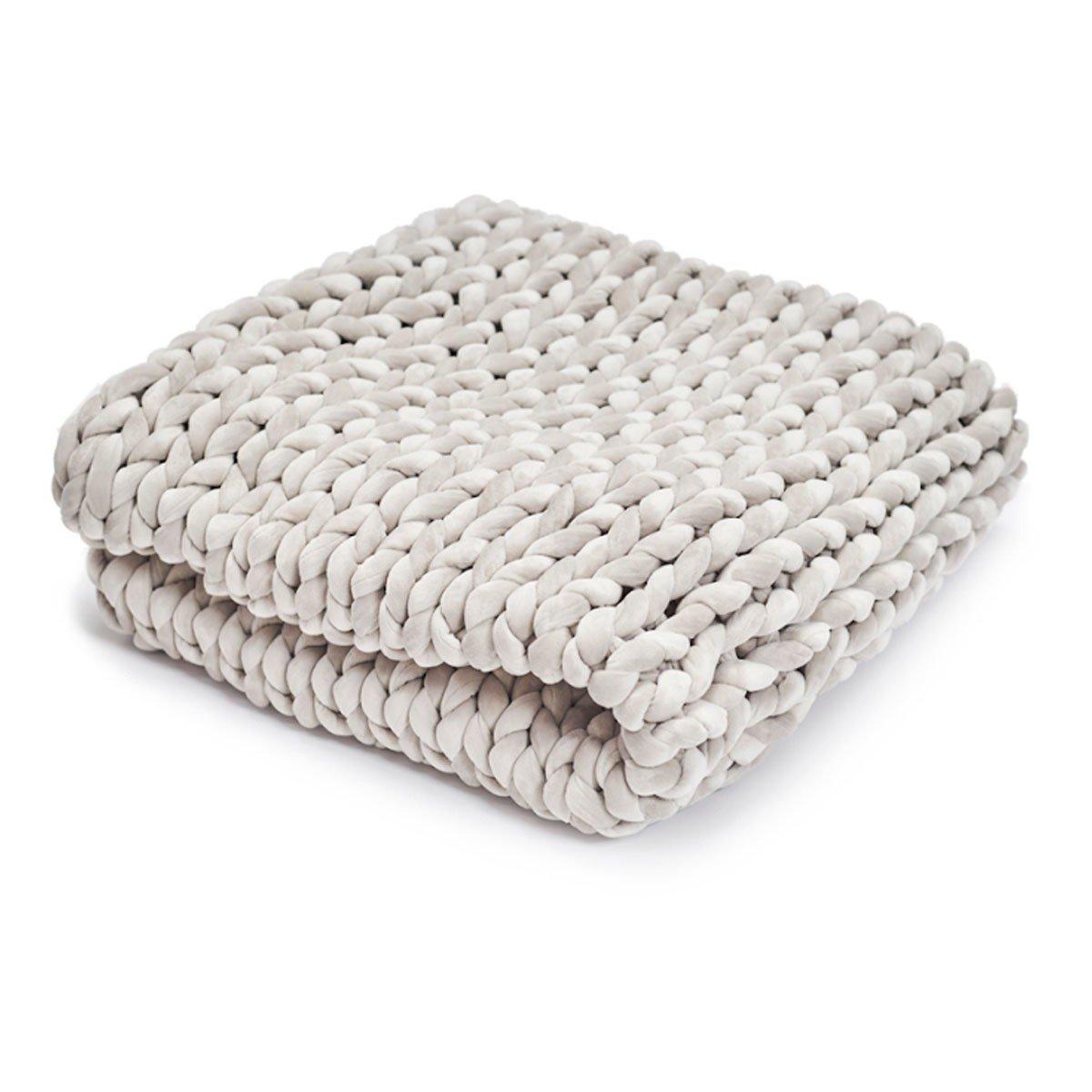 This beautiful hand knitted blanket reduces stress and anxiety, induces sleep, and looks stunning in your home.