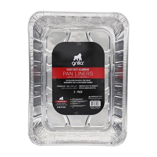 {"reviews":[],"offset":0,"limit":10,"total":0,"gtin":"661120752486"}"Full Description:\nThe solution for hassle-free grease management and a clean cooking chamber. Comes in a set of 5.\n\nFeatures:\n\u003cul>\n\u003cli>Heavy Duty Aluminum Pan Liners\u003c/li>\n\u003c/ul>\n\nSpecifications:\n\u003cul>\n\u003cli>16.8" x 11.8" x 2.7"\u003c/li>\n\u003c/ul>\n"