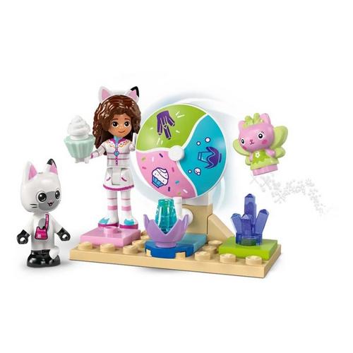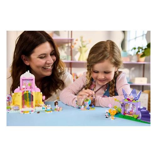 The creative playset features 2 movie locations and many LEGO figures, including Gabby, Pandy Paws and Kitty Fairy. Sweet Treat Mountain immerses little ones into a magical world of sugary treats. The characters can slide through the colorful waterfall riding on donut floats. Kitty Garden is a fantastical retreat where Kitty Fairy sits on her crystal flower throne and gems are hidden for kids to find. Colorful pictorial instructions, a large Starter Brick and separate bags with 1 model per bag make the creative experience fast and fun for little builders.