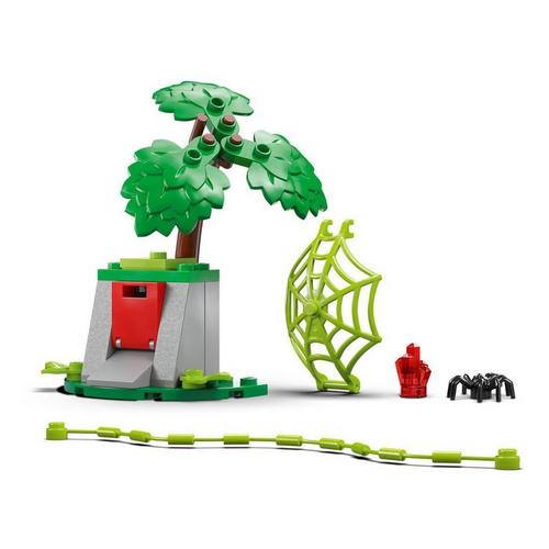 The set recreates action from the ’Dino-Webs’ season of the Spidey And His Amazing Friends TV show. It includes 2 Super Hero minifigures and 2 push-along dino-vehicles: Miles "Spin" Morales in a stegosaurus car and Electro in a dilophosaurus motorcycle. A large web element, a crystal hidden inside a rock, plus landscaping accessories inspire kids’ creative role play. Inside the box, each bag contains bricks and a large Starter Brick for a quick-to-build model and character, so play gets started quickly. Intuitive instructions are provided in the form of a colorful picture-story guide.