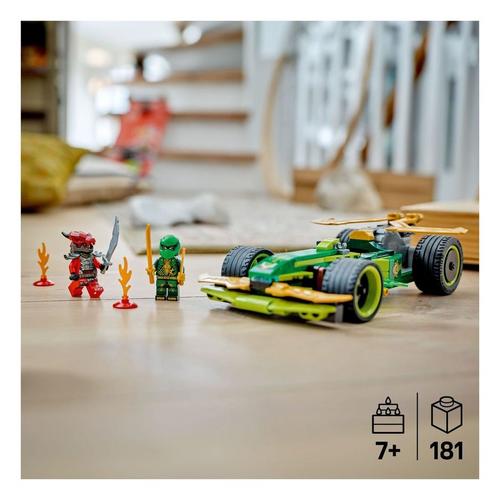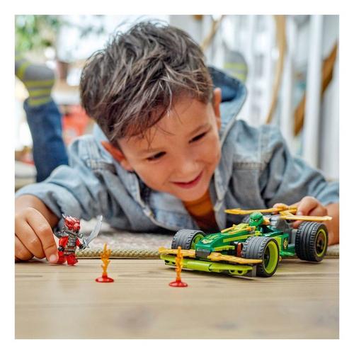 The pretend play building kit comes with 2 NINJAGO minifigures: Lloyd with 2 golden katana sword accessories, and a villainous Dragonian Warrior with a sword accessory for kids to role-play exciting battles. The building set also includes 2 lighting elements to create a small obstacle course for the race car.