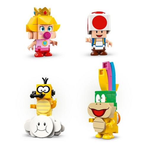 The set includes Baby Peach, Lakitu, Lemmy and Toad toy figures. Add a LEGO® Mario™, LEGO® Luigi™ or LEGO® Peach™ figure (from sets 71439, 71440 or 71441 – sold separately) for interactive play, including cool digital reactions when they drive the vehicles or are placed on the 2 Item Boxes or on the Action Tags of other builds.