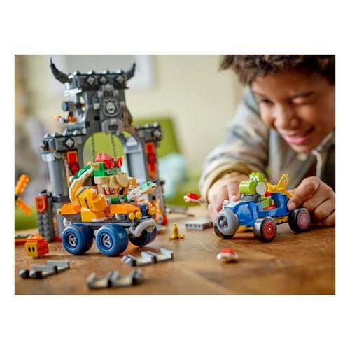 Get ready to race at Mario Kart™ – Bowser’s Castle with this LEGO® Super Mario™ toy vehicle racing set for kids (72039). A brilliant Nintendo® character gift toy for boys, girls and gamers aged 9 and up, the set features Bowser’s Castle, with space for Bowser to stand on top, foldout walls, a spinning Fire Bar and other fun functions. Drive, drift and launch shells with Bowser in the Standard ATV and Yoshi in the Mach 8 kart, smash through the castle walls, swerve away from the plunging Thwomp and topple the Lava Bubble. This building toy includes 4 LEGO Super Mario figures: Bowser, Yoshi, a Thwomp and a Lava Bubble. Add a LEGO® Mario™, LEGO® Luigi™ or LEGO® Peach™ figure (from sets 71439, 71440, 71441 or 72043 – sold separately) for interactive play, including Mario Kart sound/visual effects when they drive the vehicles. Explore the range of LEGO Super Mario: Mario Kart toy playsets (sold separately) for more vehicles and characters to expand the fun. This set contains 1,068 pieces.