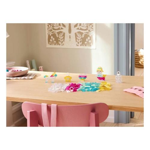 Kids begin by building heart, ghost, mermaid, star and unicorn toys. As their building confidence grows, they move onto a spaceship, cloud, shooting star, bird, narwhal, ice cream and flower. Next, they can scale up the creative fun with a large castle and dragon toy. Translucent bricks, eye and mouth pieces and hanger-bricks for display add see-through sparkle and extra creative fun to kids’ creations.