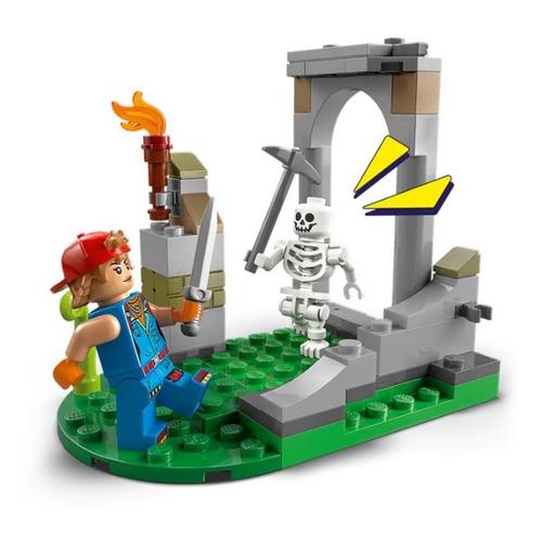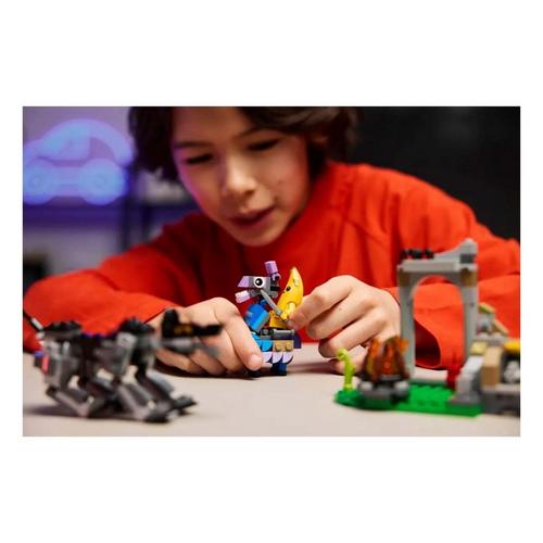 The playset replicates the first challenges players encounter in the LEGO Fortnite Odyssey video game, and boys and girls will have fun building the campfire, a workbench and ruins that can be deconstructed and reconfigured. It also features a Supply Llama figure and a wolf figure with a movable tail and legs. The action is brought to life by minifigures of Peely, Sparkplug and a skeleton, who come with weapon accessories to encourage imaginative role play.