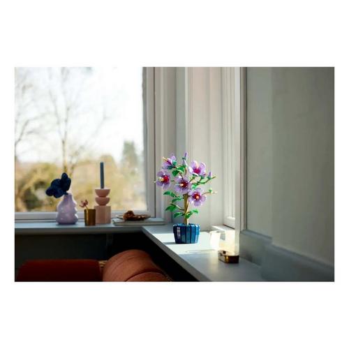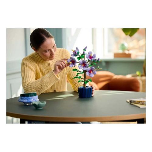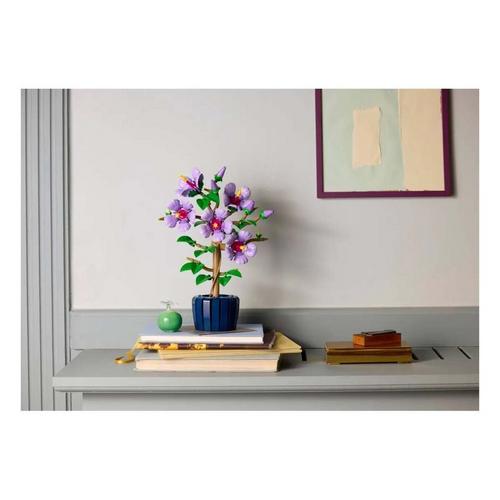 Enjoy building the LEGO plant, which features 5 large blooms, 4 flowers that are about to blossom and 2 young flower buds, before discovering the details. Capturing the gentle beauty of nature, the large blooms have lavender-colored petals and yellow stamens, while the leaves are pale green. Once you’ve finished building the hibiscus, you can move the petals and position the leaves to add a touch of customization to your creation.