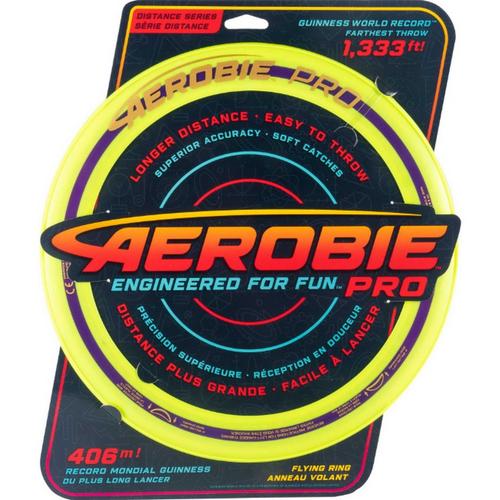 The Aerobie Pro Ring offers fast, smooth flight and easy catches in a lightweight ring design. Durable and fun for all skill levels, this flying disc comes in assorted colors that may vary.