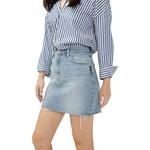 Meet the denim mini skirt you can pair with anything, dressed up or down. This high rise mini skirt with a frayed hem is the perfect mix of vintage and modern. Easy to style and always on-trend, it's the skirt you’ll be reaching for over and over again.