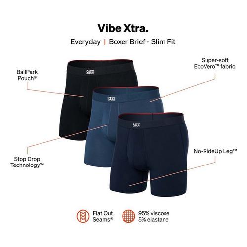 Men's SAXX Vibe Xtra Soft Comfort 3 Pack Boxer Briefs