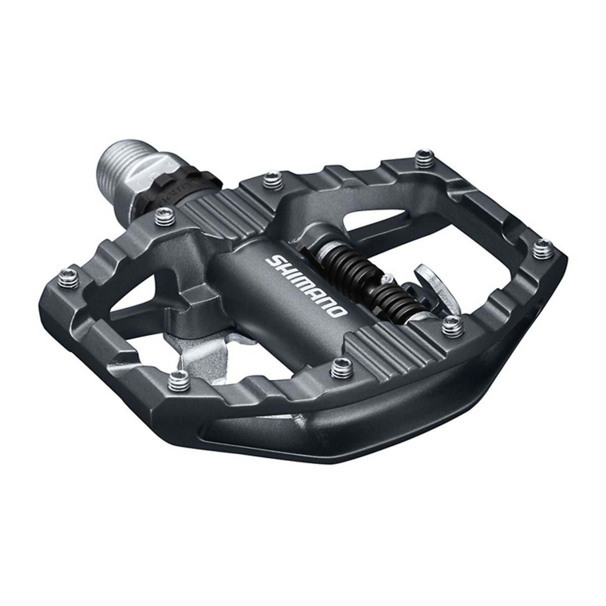 The Shimano EH500 SPD Dual Pedal combines the efficiency of the SPD system and the convenience of a platform pedal. Featuring a light action binding, the Shimano EH500 SPD pedal is easy to step in and out of, while the grip on the flat side provides better feel during wet conditions. Designed for urban riding, the Shimano EH500 SPD pedal makes riding the paved trails and roads a bit easier and faster. If you're looking for a multi-purpose pedal, check out the Shimano EH500 SPD Dual Pedal.