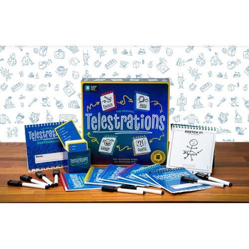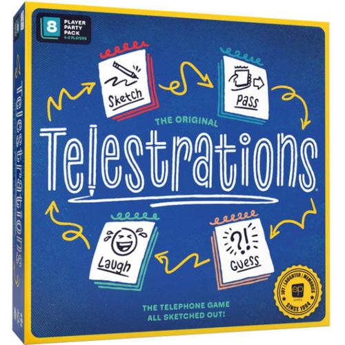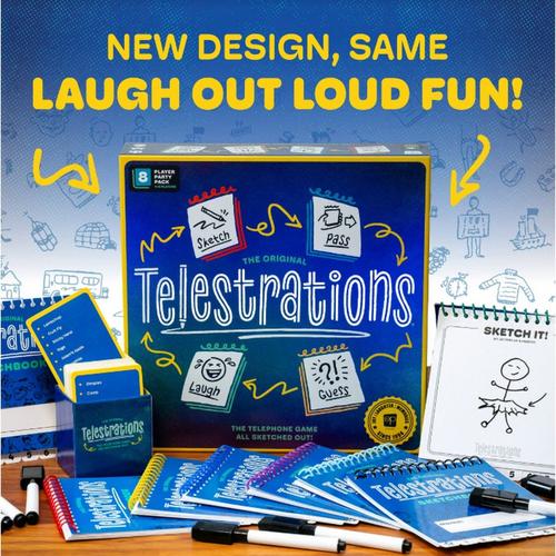 The award-winning party game Telestrations will get your family and friends laughing as they draw what they see, then guess what they saw for hours of hilarious miscommunication. All players simultaneously sketch, pass and guess while revealing laugh out loud and unpredictable outcomes!