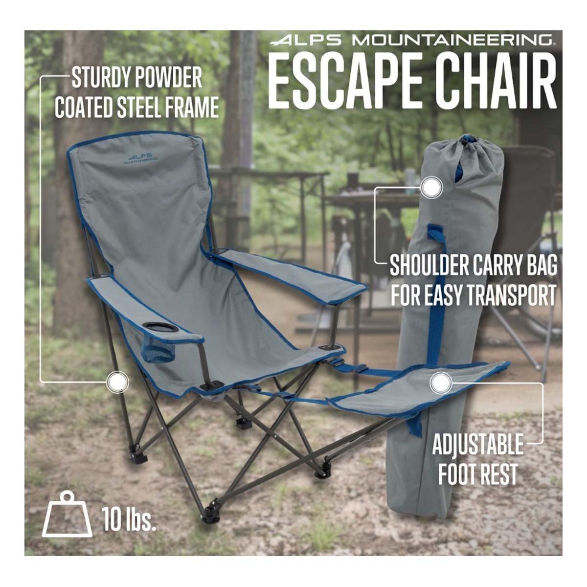Sit back, relax, and put your feet up! Indoors you may not be able to put your feet on the furniture, but when you're using this ALPS chair in the great outdoors, you're expected to - that's what we made it for: comfort and relaxation. When you sink back in the Escape Chair, you'll think you're on your recliner at home. The Escape has a sturdy powder coated frame and has a compact foldable design so storing and transporting the chair is easy.