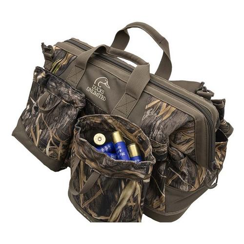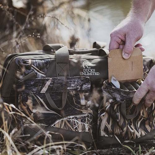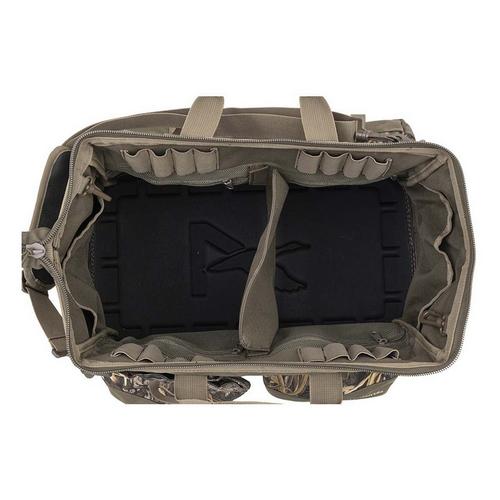 The Pit Blind Bag features a large pop-open main compartment with a removable divider to customize the content load. Additional interior pockets keep smaller items separated and within easy reach. Outside, the Pit Blind Bag boasts two hold-open pockets. These are designed to hold different shells organized and quickly accessible when switching between shot loads. An extra-large exterior pocket is also included to provide storage for a thermal beverage container or for use as an additional gear storage option.
