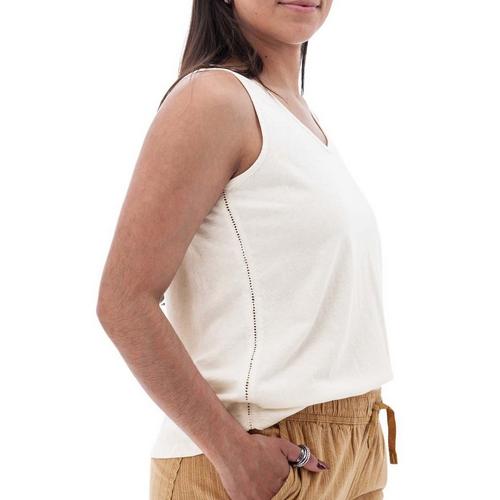 The sun is shining, that gorgeous smell of fresh cut grass lingers in the air, and the day's possibilities are endless. The Simone V-Neck Tank Top is perfect for a day like this. It is made with two (two!) sustainable fibers known for their comfort in warm weather and abilities to resist odors. When blended together to create a slub jersey fabric, organic cotton and hemp have a linen-like softness. The ladder lace details add that carefree summer charm. Incorporated along the shoulders, sides, back yoke, and center back, this feminine detail looks so cute with hair up. Easy-going and crafted to improve your day, choose the Simone V-Neck Tank Top for your summer adventures.