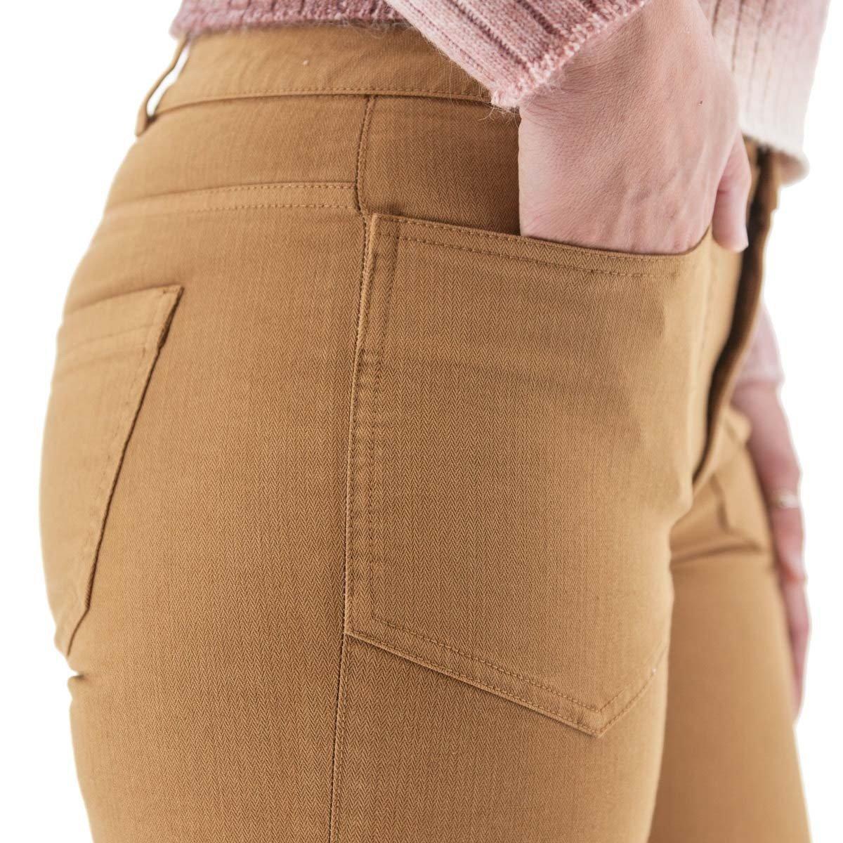 The Fair Trade Certified™ Dawson Straight Leg Pant is a staple for any wardrobe. The eco-friendly fabric is made from 98% organic cotton and just enough spandex to give you a comfortable stretch. The fabric is a herringbone weave, which not only gives it a great visual appeal but also gives the pant a comfortable, worn-in feel. Subtle details throughout show the thoughtfulness of our women-led design team and the quality of this pant. One example of this is the wide waistband, which helps prevent the pant from digging into your stomach. The decorative tape details on the leg opening are shown when rolled up, perfect for adding that pop when pairing with boots.