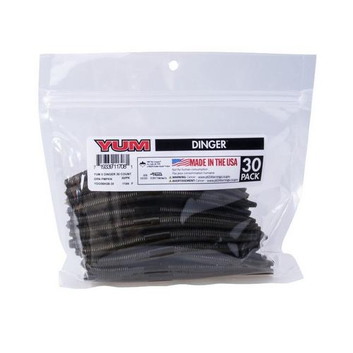 You asked for bulk packs of YUM Dingers, so here they are. The Dinger became an instant bass fishing classic lure. One of the most versatile soft plastics on the market, the YUM Dinger can be Texas, Carolina and wacky rigged, weighted or weightless, and catches bass when other lures fail. This soft plastic bait presents a very subtle life-like action that even highly pressured fish can't resist. YUM Dingers have a unique hook slot that provides better hook-ups, and they’re tougher than similar baits – so you get more fish per bait than any other.
