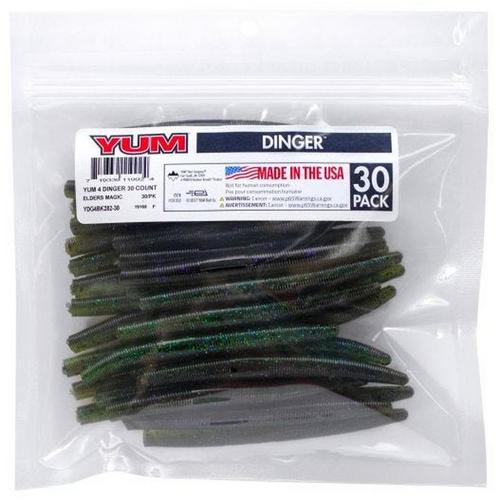 You asked for bulk packs of YUM Dingers, so here they are. The Dinger became an instant bass fishing classic lure. One of the most versatile soft plastics on the market, the YUM Dinger can be Texas, Carolina and wacky rigged, weighted or weightless, and catches bass when other lures fail. This soft plastic bait presents a very subtle life-like action that even highly pressured fish can't resist. YUM Dingers have a unique hook slot that provides better hook-ups, and they’re tougher than similar baits – so you get more fish per bait than any other.