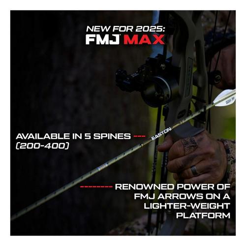 Introducing the all-new Easton 5mm FMJ MAX. The new FMJ MAX combines the renowned power of Full Metal Jacket arrows with the enhanced velocity of a lighter-weight platform. Engineered for versatile, blended performance, FMJ MAX allows for faster speeds to the target or higher FOC (Front of Center) arrow builds to boost accuracy. Crafted in the USA, the 5mm FMJ MAX features a seamless Easton Acu-Carbon core fused with a precision aluminum jacket. The synergy of combining carbon and aluminum creates greater ballistic efficiency, higher energy at impact, and increases momentum, making it the ideal shaft for taking down big game.