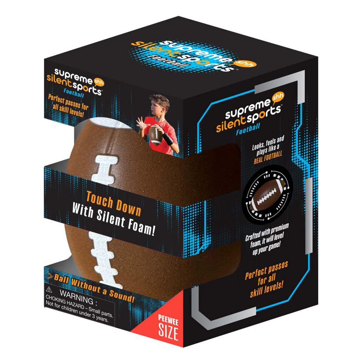 Level up your game without disturbing the peace with the Supreme Silent Sports™ Silent Football. This innovative training ball is crafted from specialized, high-density foam that absorbs sound and impact, allowing for virtually undetectable indoor play. Designed to mirror the weight and feel of a real football, it provides a realistic throwing and catching experience that helps improve accuracy and hand-eye coordination. Its "bounceback" capability makes it a standout for solo practice, as it easily returns to the player after being thrown against a wall. Safe for all ages and gentle on home interiors, the Supreme Silent Football is the ultimate solution for aspiring athletes who want to train hard, anywhere, at any time.