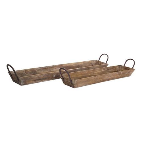 Melrose International Wooden Tray with Handles (Set of 2)