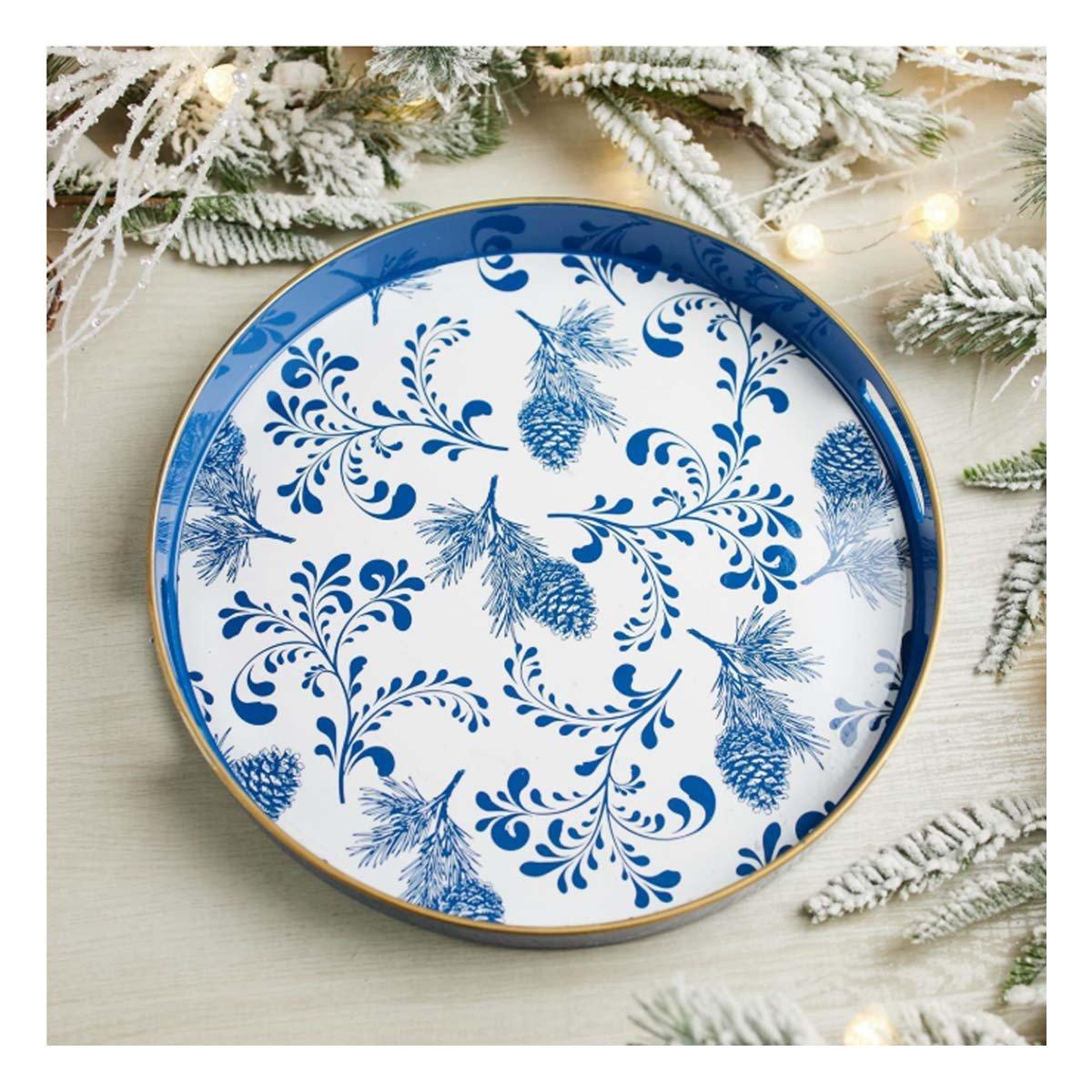 Melrose International Round Pine Print Tray 13.5"H