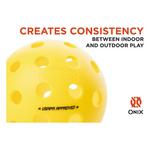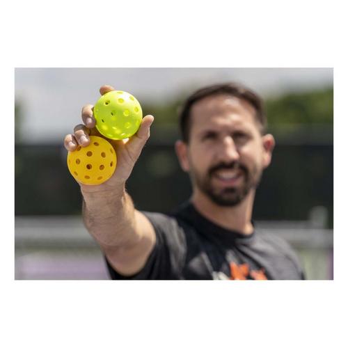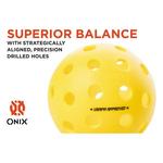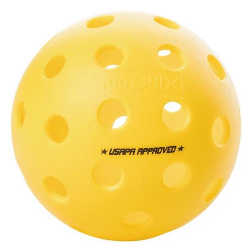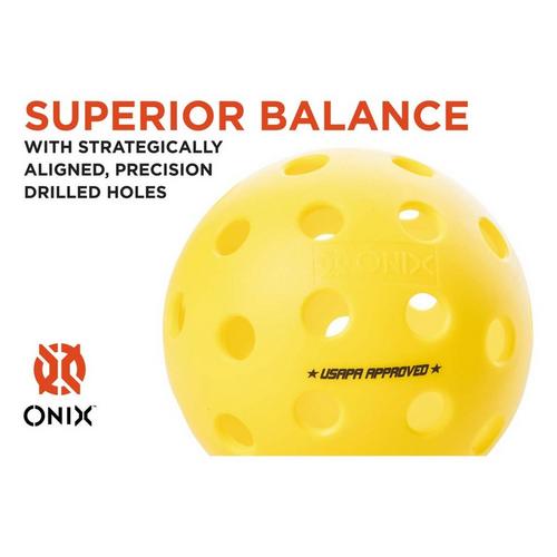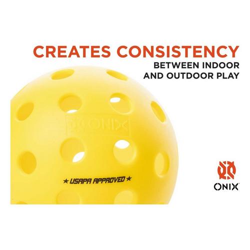 Ready to play right out of the box, the all-new ONIX Fuse Pickleball create a consistency between the indoor and outdoor game. These all-new pickleballs are specifically designed and optimized for pickleball, providing the truest flight and most authentic bounce available. The Fuse balls have exceptional seam welding offering greater durability and resists splitting. The superior balanced ball is strategically aligned with precision-drilled holes. Featuring smaller holes and precise weighting, the Fuse ball delivers optimal rebound and resists wind interference. The balls meet USA Pickleball (USAPA) requirements for outdoor tournament pickleball play.