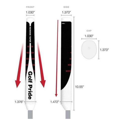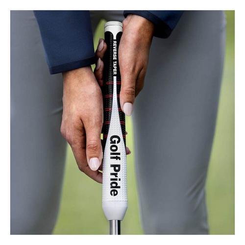 Reverse Taper flips the putter grip on its head. Our take on a more modern-day putter grip style has a larger lower hand to help optimize both hands in your stroke. Leading to a more square putter face at the moment of impact. No matter your putting style. Our flat shape is designed for those with a palm-to-palm stroke. With a softer, tackier feel and dimple pattern, Reverse Taper is designed to help you step into every putt and own the moment.