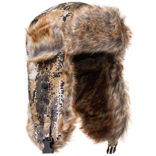 It’s all about the warmth. This trapper hunting hat with Heat Boost™ graphene technology is built to handle the coldest of weather. Made in Vertek® camo with a tricot shell and Hydrashield waterproof insert to keep you dry and block the wind when the weather turns nasty. The crown is fully lined with Heat Boost graphene short pile sherpa, a new generation of fabric enhanced with graphene’s properties of thermal conductivity, wicking abilities, and antibacterial capabilities. Knitting graphene yarn into our sherpa lining supercharges it, making a warm material even warmer – 30% warmer. A thick faux fur lining wraps around the sides of your head and extends through the ear flaps. There are grommet holes over the ears with protective flaps that can be flipped up for better audibility or secured down for added insulation. You’ll never want to face the bitter cold without this hat on your head.