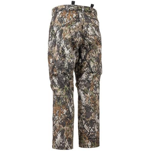 Stay stealthy as you move through the woods in our Elkins soft shell fleece pants in Vertek® camo. Constructed of a triple layer fabric made with In-Velvet® low pile fleece bonded to a waffle fleece and a windproof breathable film, these pants are comfortable and quiet. They’ll never pull or bind while you’re sitting or climbing. A DWR finish shields you from light snow or rain, while Microban® antimicrobial product protection on the waffle fleece helps keep you concealed from prey. With ample storage like deep front pockets and zip cargo pockets, you can keep your essentials with you at all times. There’s even a knife pocket on the right leg. A comfortable padded waistband features a rubberized strip to keep your shirt in place. Generous leg cuffs with zippers and inner storm flaps allow plenty of room for your favorite hunting boots. Wear alone or layer it over a base during cold to late season tree stand hunts.