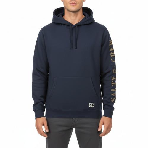 The Men's Salty Crew Refuge Fleece Hoodie is a comfortable layer for running errands or lounging around the house. Made with soft, durable material, this Salty Crew sweatshirt will feel soft next to your skin, while the ribbed wrist cuffs and hem offer a better overall fit. Plus, the logo and graphics help display your brand loyalty to Salty Crew. Stay comfortable in the Men's Salty Crew Refuge Fleece Hoodie on chilly days.