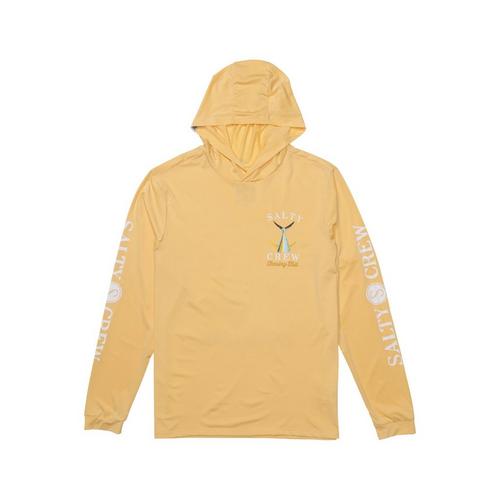 Stay protected from the sun while staying stylish with the Men's Salty Crew Tailed Hood Sunshirt Long Sleeve T-Shirt. This shirt is designed with an integrated hood and long sleeves to give you maximum sun protection. Made with lightweight, breathable fabric, it ensures comfort and durability even in the harshest conditions. The unique design features the Salty Crew's signature logo, adding a touch of nautical style. Perfect for any outdoor adventure, this sunshirt will keep you cool and covered.
