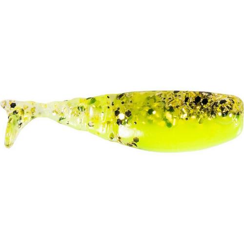 A bite-sized swimbait that gets eaten by crappies, panfish, trout and all species, the 1.75-inch Shad FryZ represents small shad and baby panfish--among the most preferred forage foods of big panfish. Thin, deep-bodied profile transitions to a segmented tail section and special swimming tail; soft ElaZtech material yielding subtle swimming motion at almost any retrieve speed, including on the fall. 10X Tough ElaZtech construction resists tail bite offs and boasts the highest fish-per-bait ratio available. Special hookslot eases rigging on a Micro Finesse ShroomZ jighead.