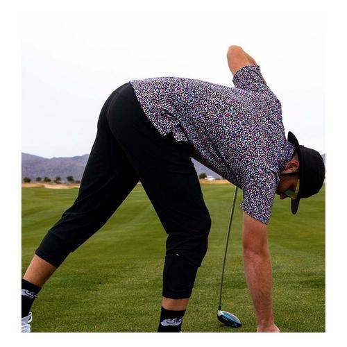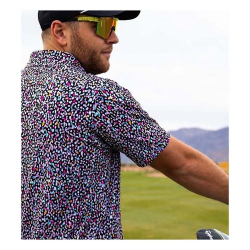 Turn heads on and off the course with the Men’s Bad Birdie Abstract Core Performance Polo. Built for performance and personality, this polo pairs a vibrant, contemporary print with the comfort and stretch you need to play your best. Crafted from Bad Birdie’s signature Core Performance fabric, the lightweight polyester-spandex blend delivers four-way stretch, moisture-wicking technology, and breathable comfort for all-day wear. Finished with a modern athletic fit and self-collar, the Abstract Polo keeps your style sharp and your game sharper.