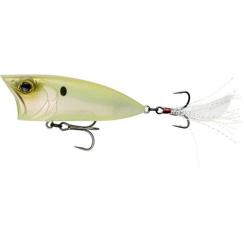 The 6th Sense (silent) SplashBack Popper will bring new life to your popper arsenal with a design and shape that has revolutionized topwater fishing. Utilizing a unique 'vee' keel style and flat sided shape, the SplashBack cuts through water with ease, making 'walking the dog' an easy task. The extra-wide mouth spits and chugs like no other surface lure while still creating the classic "bloop" sound when needed. At rest, the flat side profile results in side-to-side movement. On top of all that, realistic 3D eyes and lifelike surface detail give you the most versatile topwater out there.