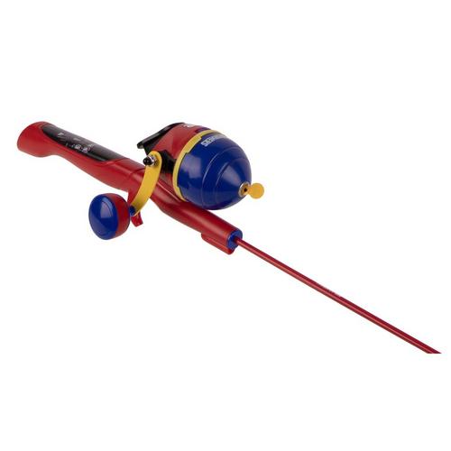 This all-in-one kit includes a 29.5″ all-in-one rod and reel, a smooth-casting spincast reel pre-spooled with 6lb line, and a practice casting plug for backyard training. The easy push-button and large kid-friendly knob make casting simple and fun, even for first-timers. Bright colors and character graphics bring extra excitement to every fishing trip, while durable components keep frustration low and smiles high.