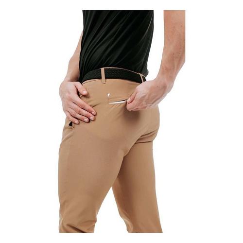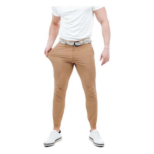 The Men's Primo Golf Apparel Primo Joggers Golf Pants offer a sleek, modern fit with exceptional comfort and mobility on the course. Crafted with four-way stretch fabric, these pants allow for a full range of motion, while the outside ankle zipper provides an adjustable fit for added style and convenience. Featuring two front pockets and two rear pockets, including one zippered pocket for secure storage, these pants also include belt loops for a personalized fit. Perfect for golfers seeking both performance and versatility, choose to wear the Men's Primo Golf Apparel Primo Joggers on or off the course.