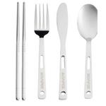 The Camp Cutlery Set is your go-to dining solution for outdoor adventures and everyday use. This 13-piece stainless steel set includes service for four, with forks, knives, spoons, and a pair of chopsticks for versatile use. Built for durability and convenience, the cutlery is dishwasher-safe and resistant to rust, maintaining its pristine condition over time.